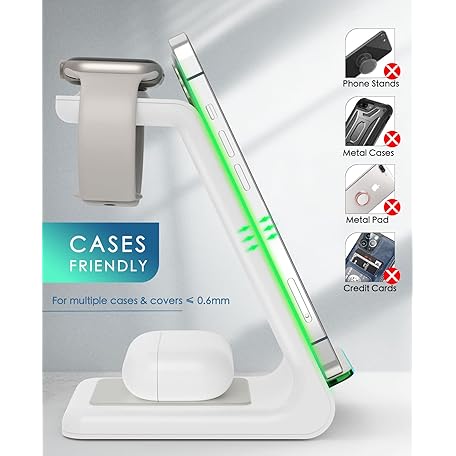 Thông tin sản phẩm 3 in 1 Wireless Charging Station, 2025 Upgraded Fast Desk Charger Station for iPhone 17 16 15 14 13 12 Pro Max Plus, Charger Stand for Apple Watch 11 10 9 8 7 6 5 4 3 2 Ultra SE, Airpods 4 3 2 Pro