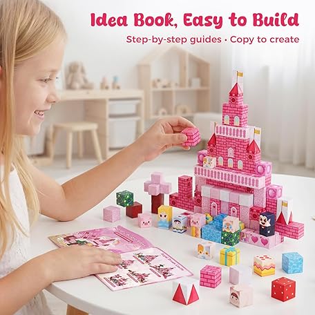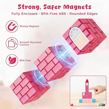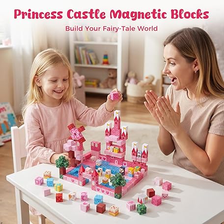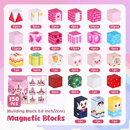 • 3 otters Magnetic Blocks 150PCS, Princess Castle Magnet Cubes STEM Montessori Building Toys for Girls, Sensory Gifts for Kids Birthday Christmas