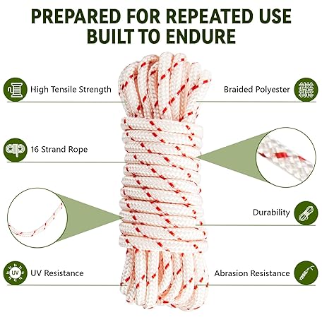 Thông tin sản phẩm 3 Pack, 10 ft x 9/64" (3.5mm) Pull Cord Rope with Handle, Premium Starter Rope with High Tensile Strength, Universal Pull Cord Replacement for Lawn Mower, Generator, Chainsaw, and Small Engine
