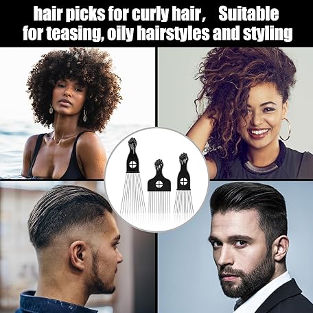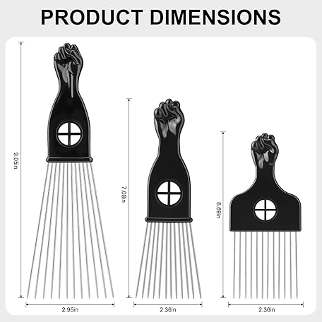 3 Pack Afro Hair Picks for Men and Women, Cpoxixt Metal Afro Comb Picks for Natural Curly Hair Styling Fist Design(Black)