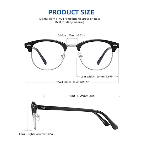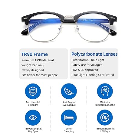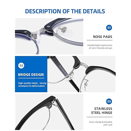 Thông tin sản phẩm 3 Pack Blue Light Blocking Glasses,Computer Gaming Glasses,Retro Semi Rimless UV400 Clear Lens Computer Eyewear