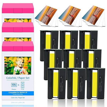 3 Pack Compatible for Canon KP-108IN KP108 9 Color Ink Cartridge and 324 Sheets Paper Set 4"x6" 100 x148mm for Selphy CP1300 CP1500 CP1200 ES1 ES2 ES30 Wireless Compact Photo