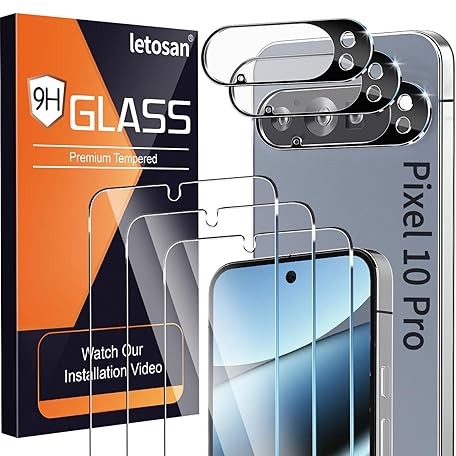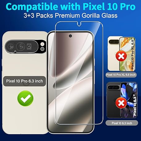 3 Pack Glass Screen Protector for Google Pixel 10 Pro [6.3 inch] with 3 Pack Camera Lens Protector, 9H Tempered Glass, Fingerprint Unlock, HD Ultra-thin Bubble-Free