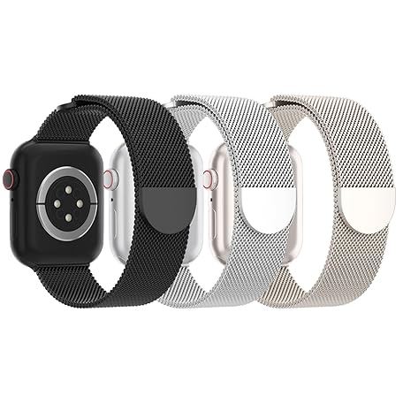 3 Pack Mesh Metal Band Compatible with Apple Watch Band 38mm 40mm 41mm 42mm 44mm 45mm 46mm 49mm, Stainless Steel Magnetic Loop Strap for iWatch Ultra 3 2 1 Series 11/10/9/8/SE/7/6/5/4/3 Men Women