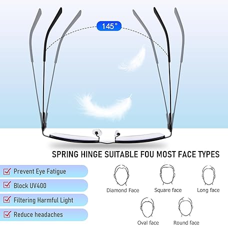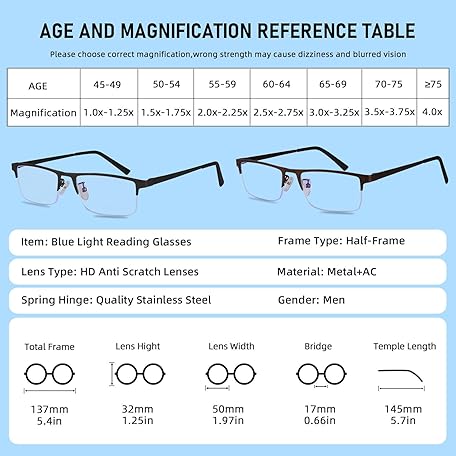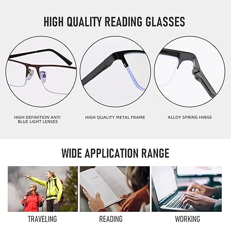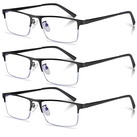 Thông tin sản phẩm 3-Pack Reading Glasses for Men, Lightweight Metal Half Frame Blue Light Blocking Computer Readers, Stylish Filter UV Ray/Computer Glare with Spring Hinge Eyeglasses(3PCS Black,+1.0)