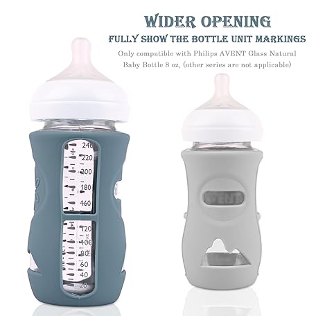 Thông tin sản phẩm 3 Pack Silicone Sleeves for Avent Natural Glass Baby Bottles, Anti Breakage Baby Bottle Holder, Compatible Philips Avent Glass Natural Baby Bottle 8 oz (Grey+Dark Blue+Apricot)