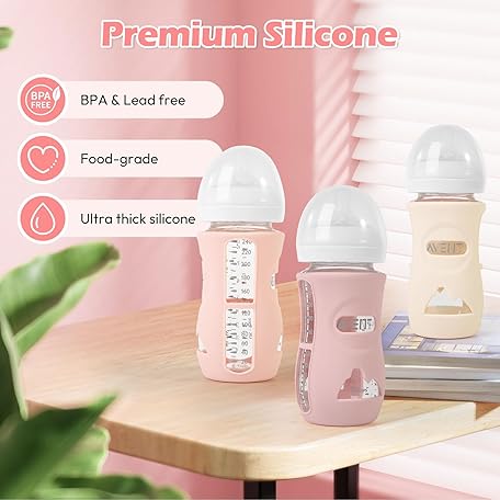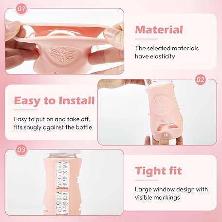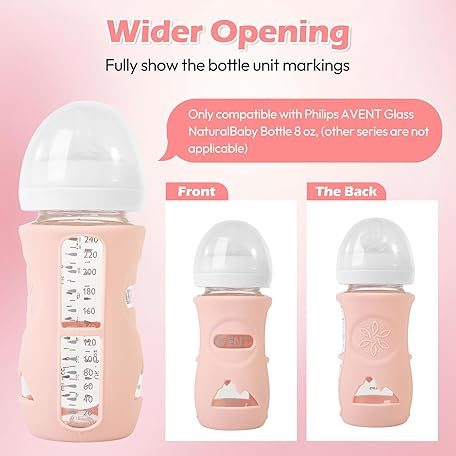 3 Pack Silicone Sleeves for Philips Avent Natural Glass Baby Bottles, Anti Breakage Baby Bottle Holder for Baby Girls, Compatible with Philips Avent Glass Natural Baby Bottle, 8 oz