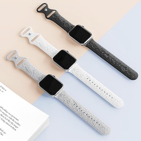 Sản phẩm 3 Packs Floral Engraved Bands Compatible with Apple Watch Band 40mm 41mm 38mm 42mm 44mm 45mm 49mm for Women, Silicone Cute Embossed Rose Apple Watch Band for iWatch Series 11 10 9 8 7 6 5 4 SE Ultra đang được bán với giá ưu đãi là $10.3332 tại nước Mỹ.