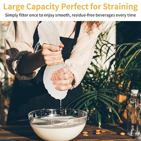 Sản phẩm 3 Pcs 12"x12" Nut Milk Bag, Natural Unbleached Cotton Cheese Cloth Bag for Straining, Reusable Strainer Bag for Oat Almond Milk, Cheese Making, Yogurt, Juice, Cold Brew Coffee, Beer Tea (12x12 Inch) đang được bán với giá ưu đãi là $5.341 tại nước Mỹ.
