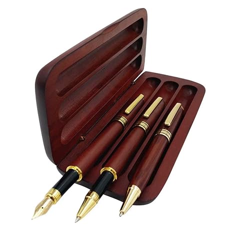 Sản phẩm 3 Pcs Wooden Pens Set with Gift Case/Best Writing Fountain Fancy Ballpoint Pen and Luxury Gel Pen with Ink Refills, Promotional Business Designer Pens đang được bán với giá ưu đãi là $20.6882 tại nước Mỹ.