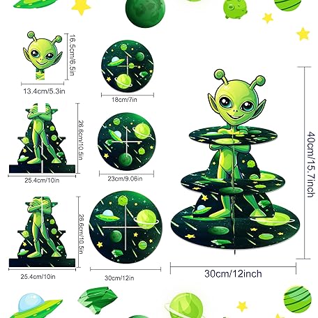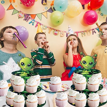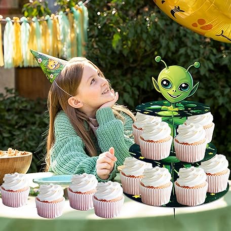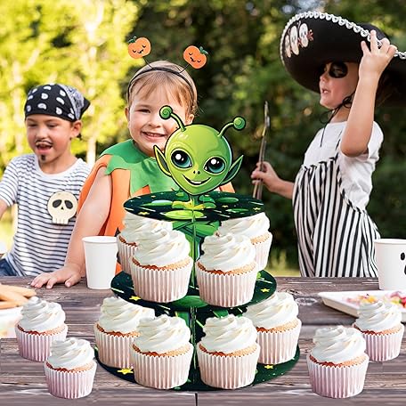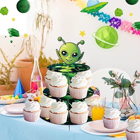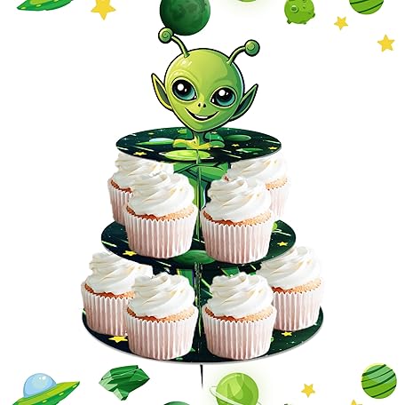 3 Tier Alien Cupcake Stand, UFO Theme Spooky Dessert Stand Cake Tower for Birthday, Picnic, Graduation Party Supplies