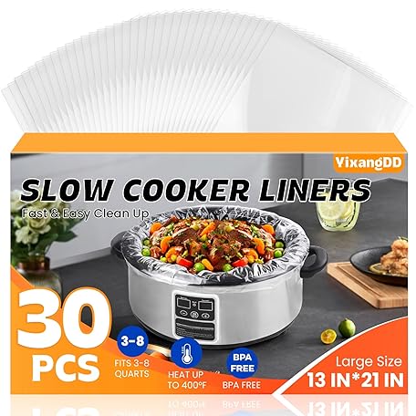 30 Pack Slow Cooker Liners, Large Size 13"x 21" Cooking Bags Disposable Pot Liners, Plastic Slow Cooker Bags Fits 3-8 Quarts, BPA Free, Suitable for Oval & Round Pot