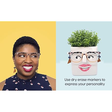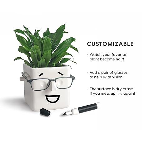 Thông tin sản phẩm 30 Watt Face Plant, Novelty Planter Holds Small Plants, Glasses & You Can Draw on It. Elegant Ceramic Pot for Succulents, Cacti or Your Average Fern, Perfect Gifting