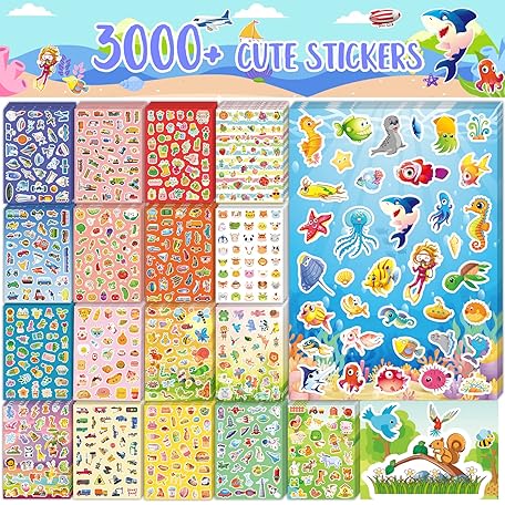 Thông tin sản phẩm 3000+PCS Kids Stickers for Water Bottles, 18 Themes with Cars Food Trucks Plant, Animal Stickers for Toddlers Students Teachers Adults Parent, Cute Stickers for Journaling Gift Laptop Phone