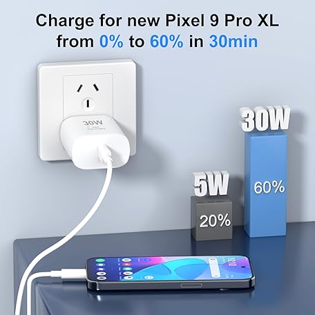 30W Type-C Fast Charging for Google Pixel 9/9 Pro/9 Pro XL/8/8a/8 Pro/7 Pro/7a/7/6/5/4/3 XL,30W USB C Super Fast Charger Block & 10FT USB C to C Cable