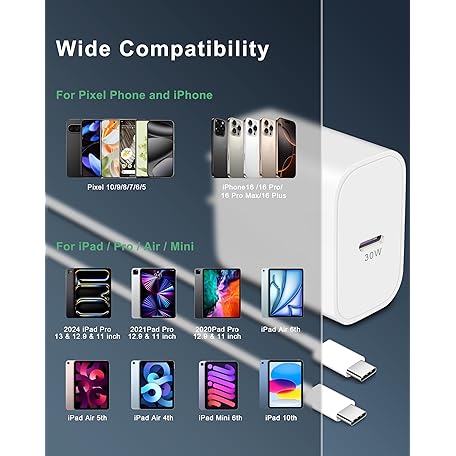 Sản phẩm 30W USB C Fast Charger for Google Pixel 10/10 Pro XL/10 Pro Fold/9/9 Pro XL/8/8a/8 Pro/7/7a/6/5/4/3 XL, 30 Watt Type C Super Fast Wall Charger Block with 6FT Charging Cable đang được bán với giá ưu đãi là $10.8891 tại nước Mỹ.