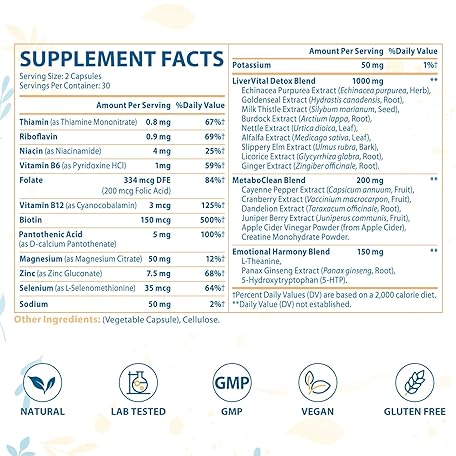 Thông tin sản phẩm 31-in-ONE Detox and Liver Cleanser, Full Body Detoxification, Toxins Cleaner for Liver, Kidney, Natural Herbal Formula, Support Immune & Mood, 60 Capsules