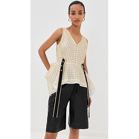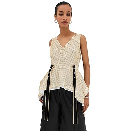 3.1 Phillip Lim Women's Plaid Organza V Neck Flounce Top