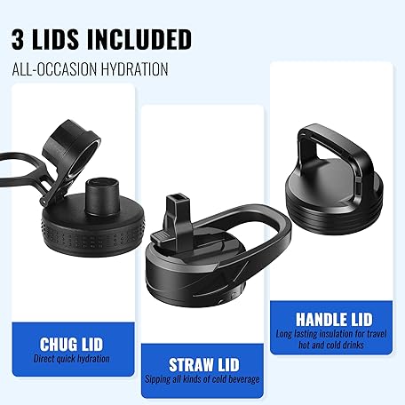 Thông tin sản phẩm 32oz Insulated Water Bottle with Straw, Stainless Steel Metal Vacuum Water Flask, Large Thermal Water bottle with Leakproof 3 Lids for Travel, Camping, Gym Sports Indigo Black