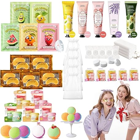 35 Pcs Spa Party Supplies for 5 – Spa Gifts for Women, Girls & Kids | Spa Set with Eye & Face Masks, Lip Balm, Hand Cream, Bath Bombs, Towels & Gift Bags | Spa Kit for Birthdays, Sleepovers, Spa Days