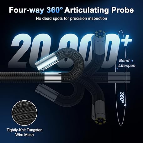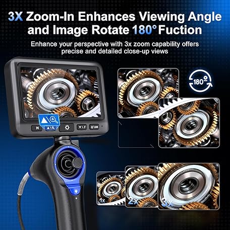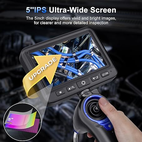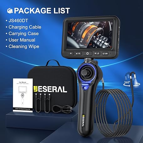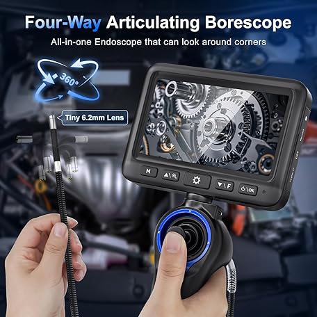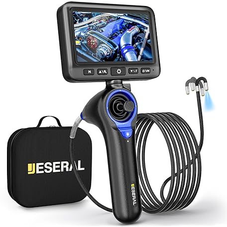 360°Articulating Borescope Camera - JESERAL 5" HD 1080P Inspection Camera Screen with 6 Light, Endoscope with 6.2mm IP67 Waterproof Probe, 3X Zoom 4-Way Borescope with Flexible Cable