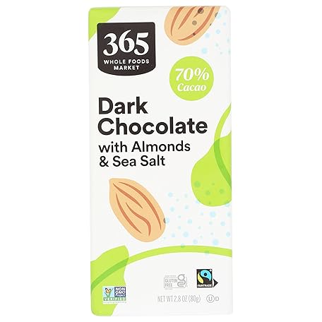 • 365 by Whole Foods Market, Almond & Sea Salt Dark Chocolate Bar, 2.8 Ounce