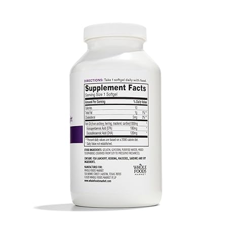 Sản phẩm 365 by Whole Foods Market, Fish Oil 1000 Mg Softgels, 250 Count đang được bán với giá ưu đãi là $23.9582 tại nước Mỹ.