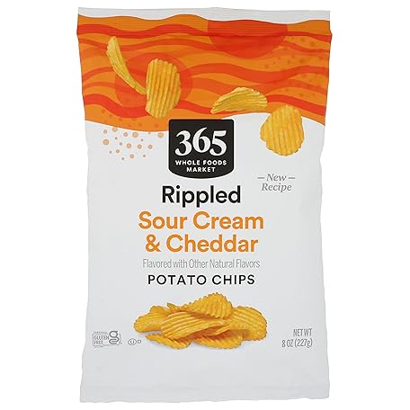 • 365 By Whole Foods Market, Potato Chips Rippled Cheddar & Sour Cream, 8 Ounce