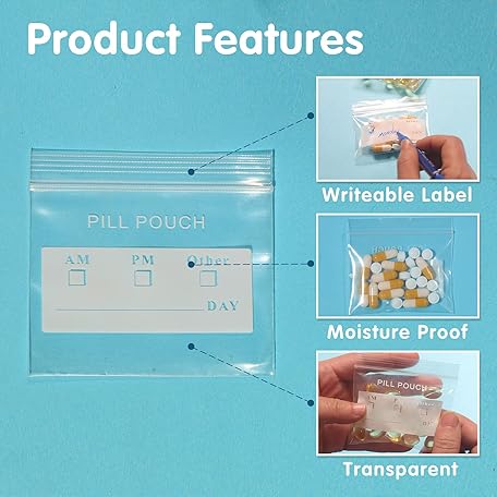 Thông tin sản phẩm 375 Packs 6 Mil Sturdy Pill Bags BPA Free Pill Pouch 3 x 2.75 Inch with Writable Label Handy Small Ziplock Plastic Bags for Travel Pill Organizer, Jewelry and Small Craft Pieces and Easy to Use