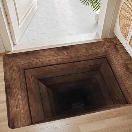 3D Optical Illusion Rug, Marble Brick Bottomless Hole Area Rug for Living Room 3D Trap Optical Visual Illusion Rugs Kids Playroom Floor Carpet Mat Non-Slip,M,60 * 90cm