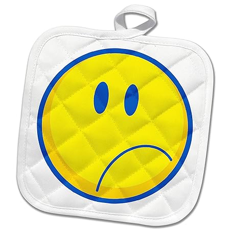 3dRose Silly Sad Face Smiling Yellow and Blue 8x8 Potholder
