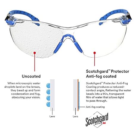 Thông tin sản phẩm 3M Safety Glasses, Solus 1000 Series, ANSI Z87, Scotchgard Anti-Fog, Clear Lens, Low Profile, Blue/Black Frame