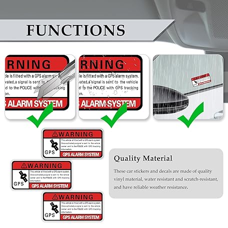 3PCS Car Stickers,Warning GPS Alarm System Anti-Theft GPS Tracking Sticker,3.2x1.4 Inch Self Adhesive Car Warning Stickers Automotive Exterior Accessories for Car SUV Truck