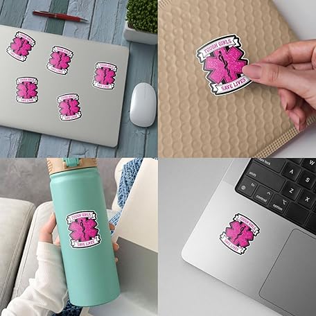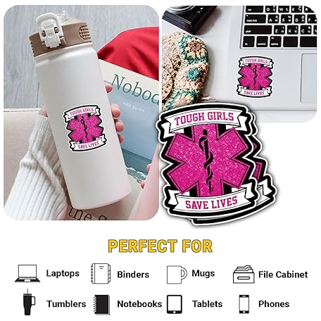3Pcs Tough Girls Save Lives Sticker Pink EMS Healthcare Gift Girl Power Emergency Medical Technician First Responder Stickers Nurse Paramedic Decal for Laptop Water Bottle Toolbox Phone Case Cars 3"