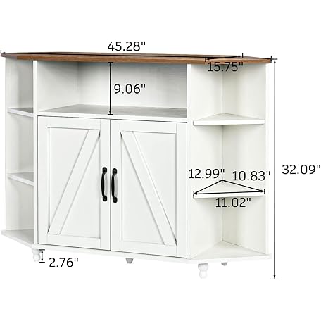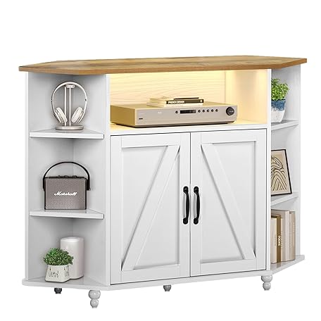 4 EVER WINNER Corner TV Stand for 50 Inch TV, Corner Entertainment Center with LED Lights and Adjustable Shelves, Farmhouse Corner TV Cabinet with Barn Doors for Living Room, White