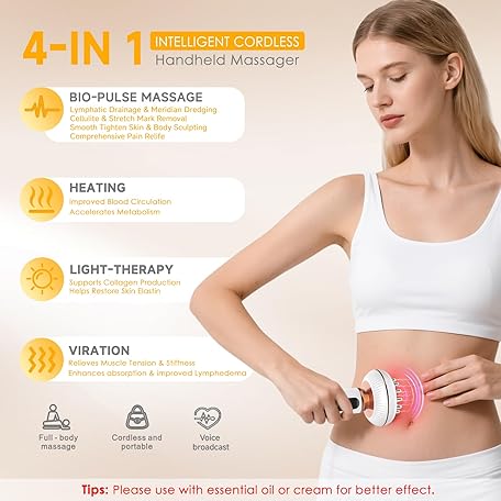 Thông tin sản phẩm 4-in-1 Body Sculpting Machine - Lymphatic Drainage Massager - Anit Cellulite Massage Tool Help Reduce Stretch Marks & Cellulite & Fat, Pain Relife Devices for Body (Belly, Legs, Arms, Butt, Low Back)