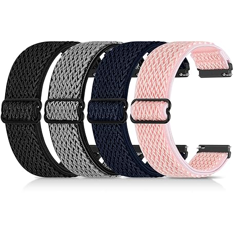 4 Pack 20mm Elastic Nylon Bands Compatible with Garmin Vivoactive 6/5/3, Garmin Venu/Venu 2 Plus/Vivomove 3, Amazfit Bip 3/Bip 3 Pro, Quick Release Smart Watch Band for Amazfit Active 2