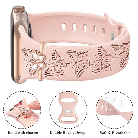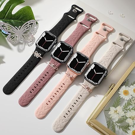 4 PACK Engraved Silicone Bands Compatible with Apple Watch Band 40mm 38mm 41mm 42mm 44mm 45mm 46mm 49mm Women Breathable Soft Cute Sport Replacement Strap for iWatch SE Series 11 10 9 8 7 6 5 4 3 2 1