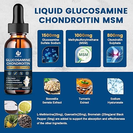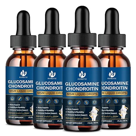 (4 Pack) Glucosamine Chondroitin MSM Liquid Drops, High Absorption, Antioxidant, Immune, Bone Support, MSM Supplement for Men & Women, Vegan, Sugar-Free, Raspberry Flavor, 1 Fl Oz