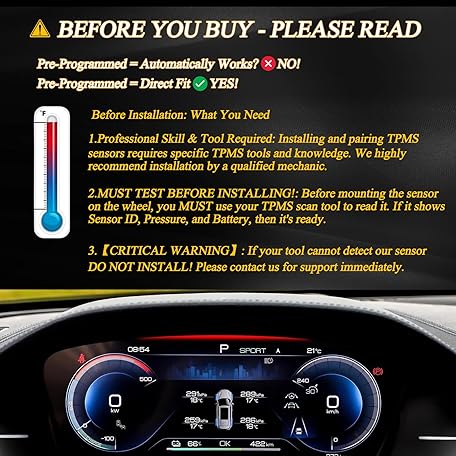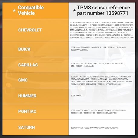 Thông tin sản phẩm 4-Pack GM TPMS Sensors 315MHz, Pre-Programmed Tire Pressure Monitoring System Replacement for Chevy Silverado Equinox, GMC Sierra, Buick, Cadillac - Replaces OE# 13598771 13598772 13586335 13581558