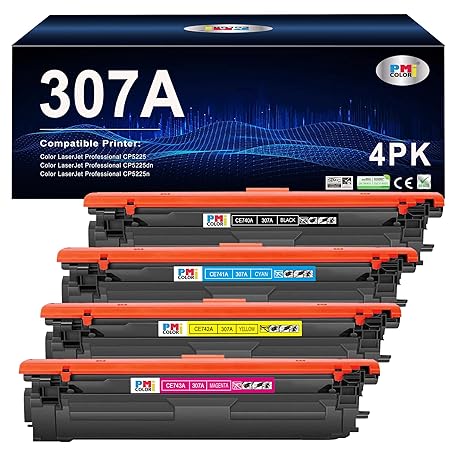 • 4 Pack Replacement for HP 307A Toner Cartridges Works with HP Color Professional CP5225 CP5225n CP5225dn Printer (Black,Cyan, Magenta, Yellow)