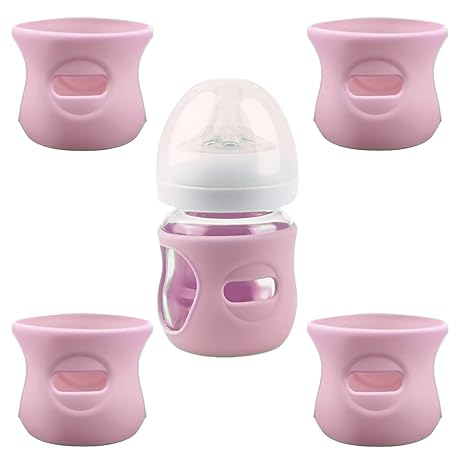 Thông tin sản phẩm 4 Pack Silicone Sleeves for Avent Natural Glass Baby Bottles, Anti Breakage Baby Bottle Holder, Compatible with Philips Avent Glass Natural Baby Bottle, BPA Free (Pink, 4 OZ)