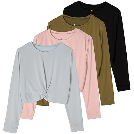 4 Pack: Women's Dry-Fit Long-Sleeve Twist Front T-Shirt - Athletic Workout Yoga Tops (Available in Plus Size)