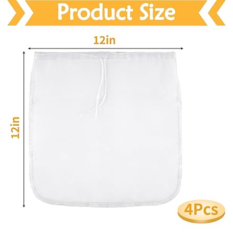 Thông tin sản phẩm 4 Pcs 12"x12" Nut Milk Bag, Fine Mesh Nylon Cheese Cloth Bag for Straining, Reusable Strainer Bags for Almond Milk, Yogurt, Juice, Cheese Making, Cold Brew Coffee, Beer Tea