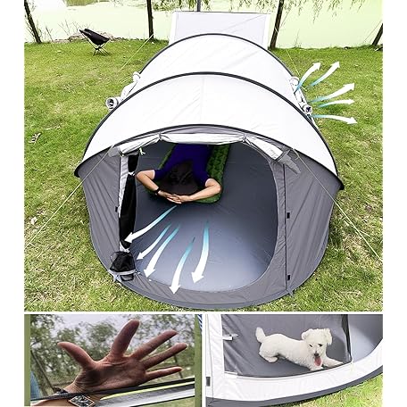 • 4 Person Easy Pop Up Tent Waterproof Automatic Setup 2 Doors-Instant Family Tents for Camping Hiking & Traveling