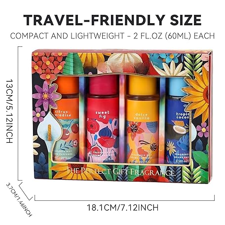 4 Piece Fragrance Mist Mini Gift Set for Women ,Travel Size Perfumes Hair & Body Spray, Citrus Paradise, Sweet Fig, Dolce Vanilla, Tropical Coconut – Perfect Birthday Holiday Gift for Her (1 Set)