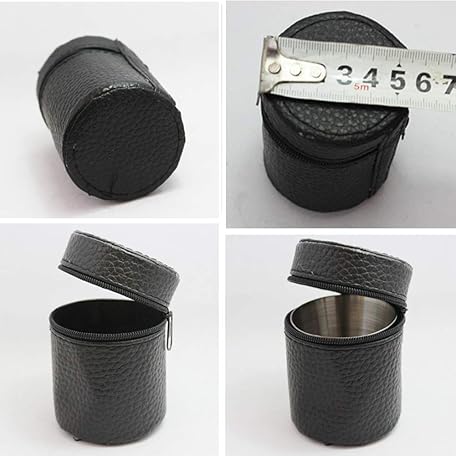 Thông tin sản phẩm 4 Pieces 30ml (1oz) Stainless Steel Shot Cups Shot Glass Drinking Vessel with One Black PU-Leather Carrying Case Outdoor Camping Travel Coffee Tea Cup, Silver Cup, Black Case