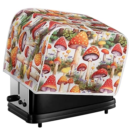 4 Slice Toaster Cover Magical Mushroom Print Kitchen Appliance Cover, Forest Red Mushroom Pattern Bread Machine Cover Household Toaster Cover Polyester Bakeware