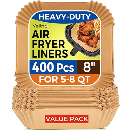 400 Pcs Air Fryer Paper Liners, 8" Square Air Fryer Liners Disposable, Heavy-Duty Parchment Paper for 5-8 qt Airfryer Basket, Non-Stick & Grease-Proof Baking Liner for Oven Pan