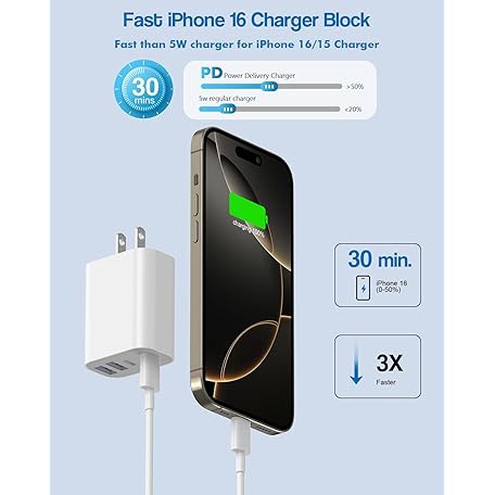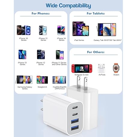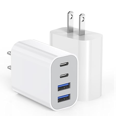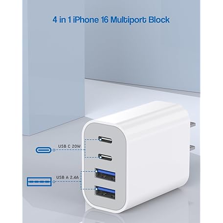 40W iPhone 17 16 Charger Block,2Pack 4-Port Fast USB C Charger Blocks,Multiport PD Power Adapter & QC Phone Charging Apple Adapter for iPhone 17 Air/17 Pro Max/16e/16 Pro/15/15Pro Max/14/13/12/11/iPad